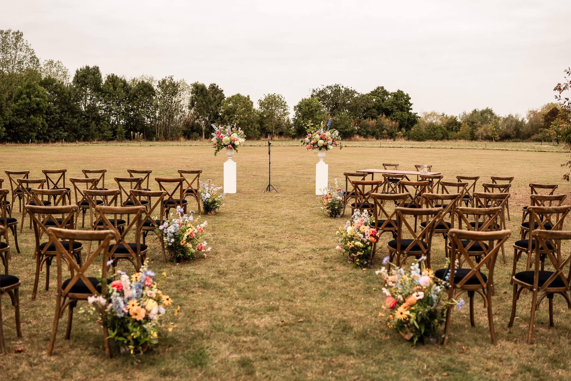One of the biggest advantages of getting married at Scarlet Hall is flexibility. The venue is licensed for civil and humanist ceremonies in both the barn and gardens, meaning you can choose between an atmospheric indoor setting or an al fresco ceremony on the five-acre lawn.