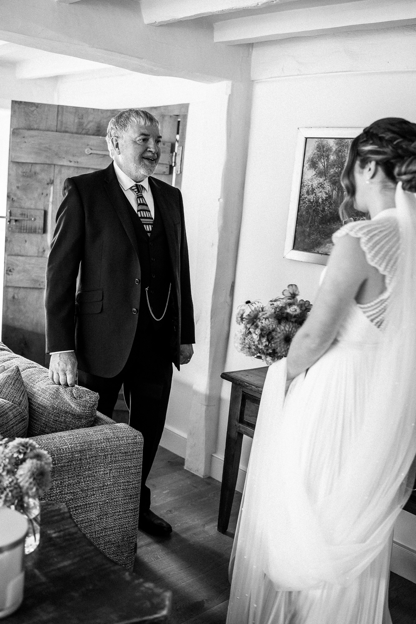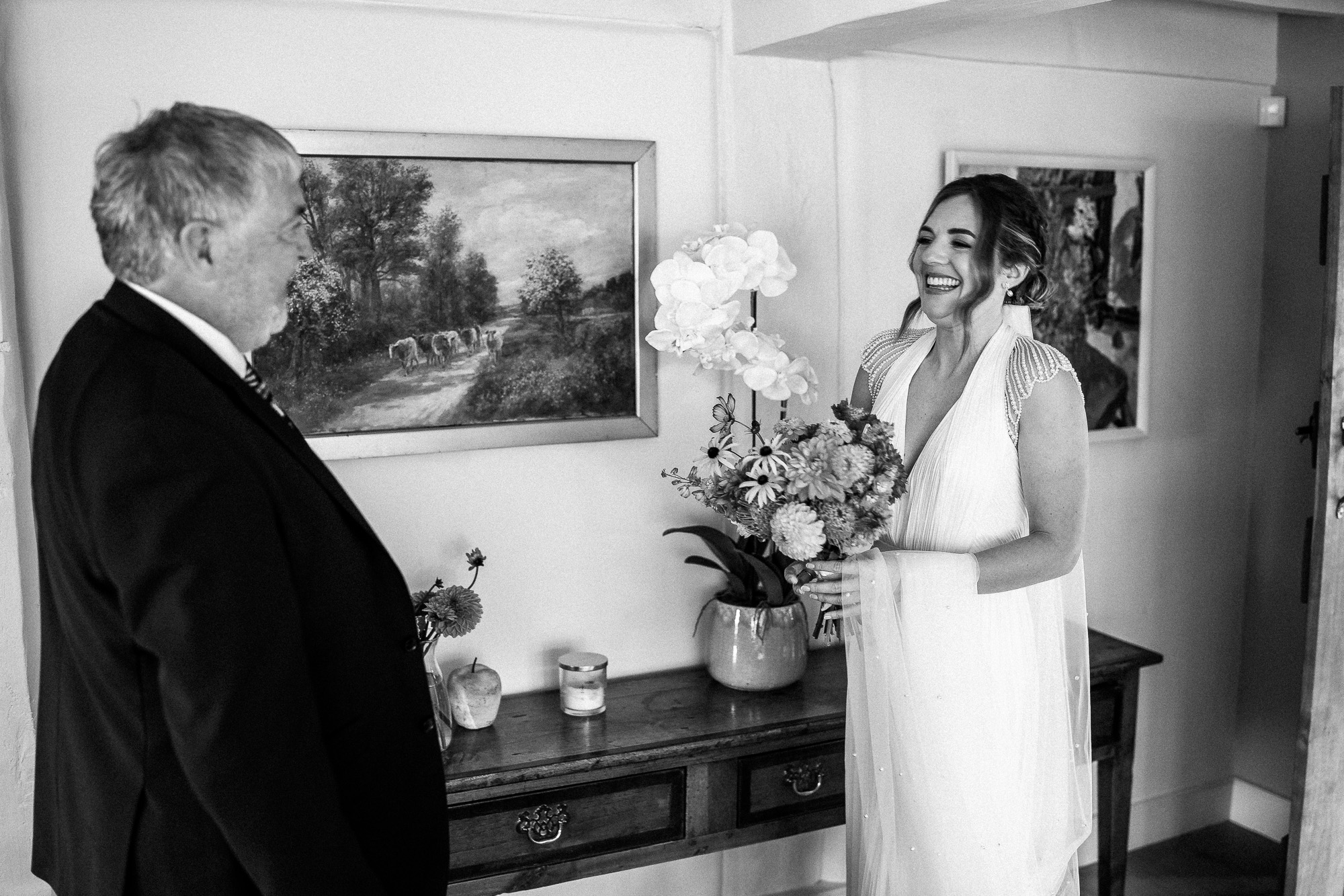 One of the most powerful parts of any wedding morning at Scarlet Hall is the first look with a parent. Against the backdrop of timbered walls and centuries-old fireplaces, those emotional reactions feel even more profound. Tears, laughter, a steadying hand, a quiet hug. These are the moments that define the day, and capturing them with sensitivity and intention is central to my approach as a Scarlet Hall wedding photographer.