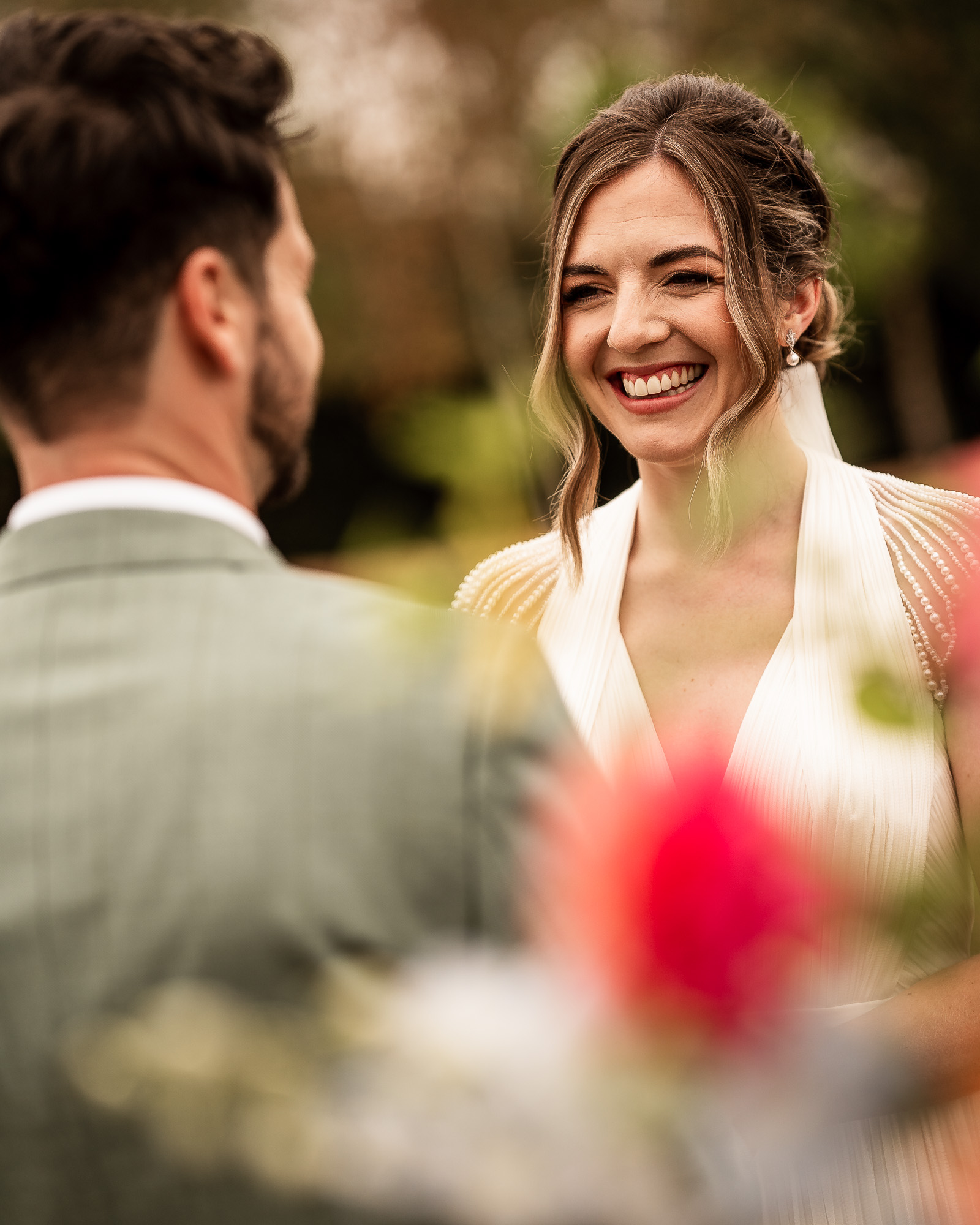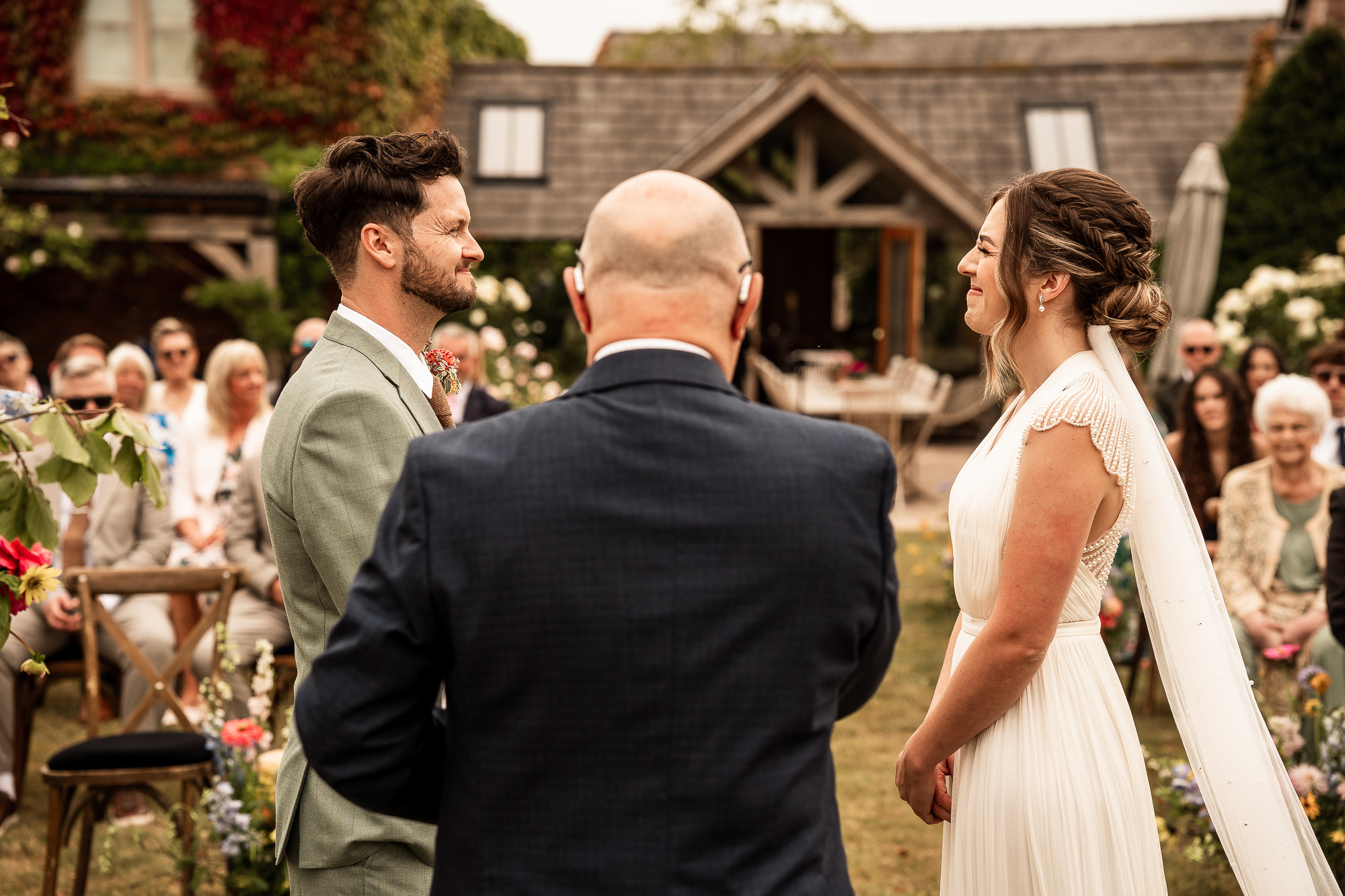 As the celebrant led the civil ceremony, laughter and emotion flowed easily. Outdoor wedding ceremonies at Scarlet Hall have a wonderfully relaxed energy. Guests lean in, children watch wide-eyed, and there is a shared sense of occasion beneath the open sky. For me, as a Scarlet Hall wedding photographer, this is where candid storytelling thrives. Genuine expressions, happy tears, fleeting glances between the couple, all captured in beautiful, natural light.