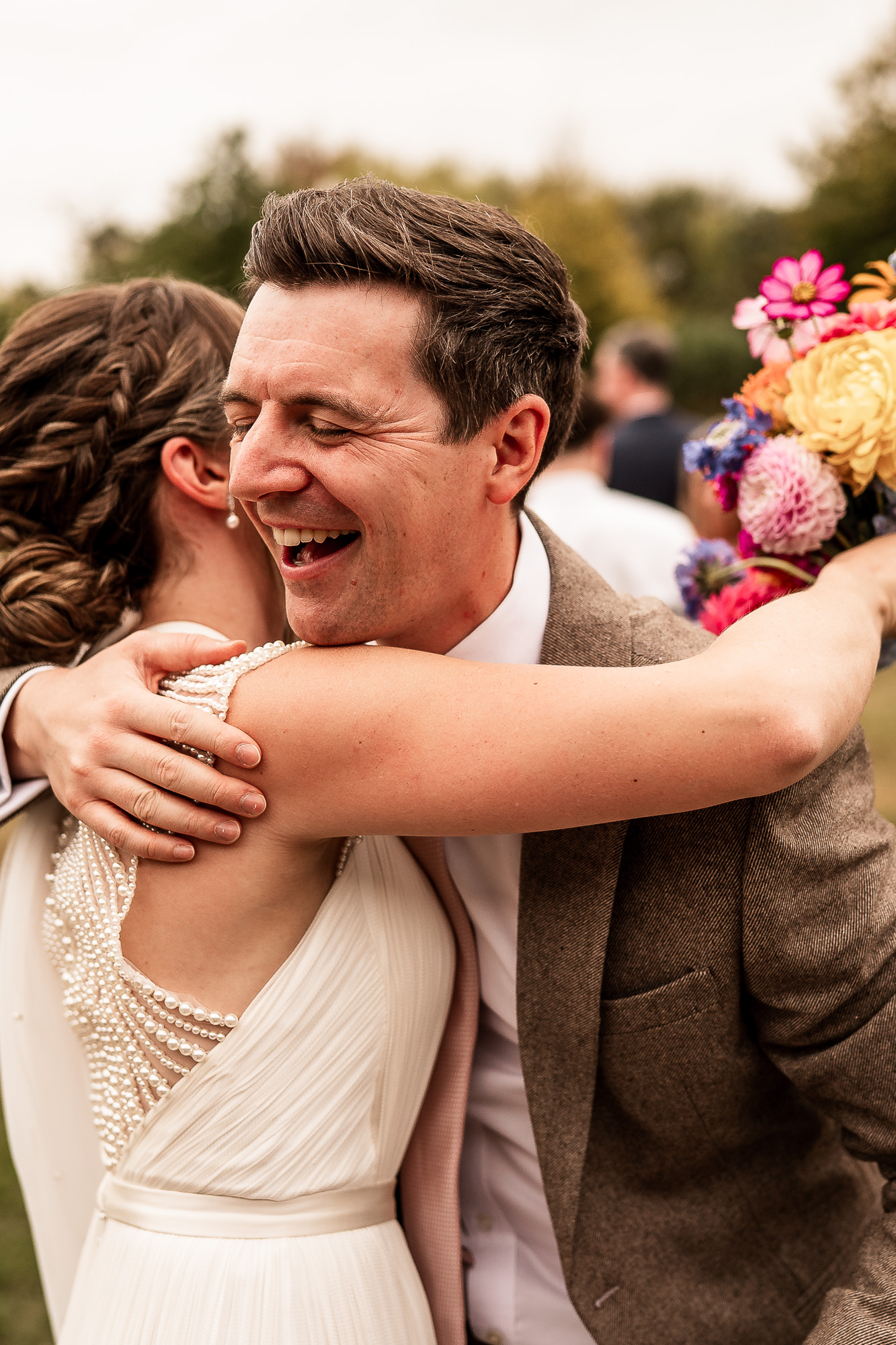 For me as a Scarlet Hall wedding photographer, this is one of the most rewarding parts of the day to photograph. You see the hug from nan, the kiss from the mother of the bride, friends reunited after years apart, and all those small but emotionally charged interactions that define the atmosphere of a wedding. This is candid wedding photography at its strongest. Quiet observation, natural reactions, authentic storytelling, all unfolding in beautiful, soft outdoor light.