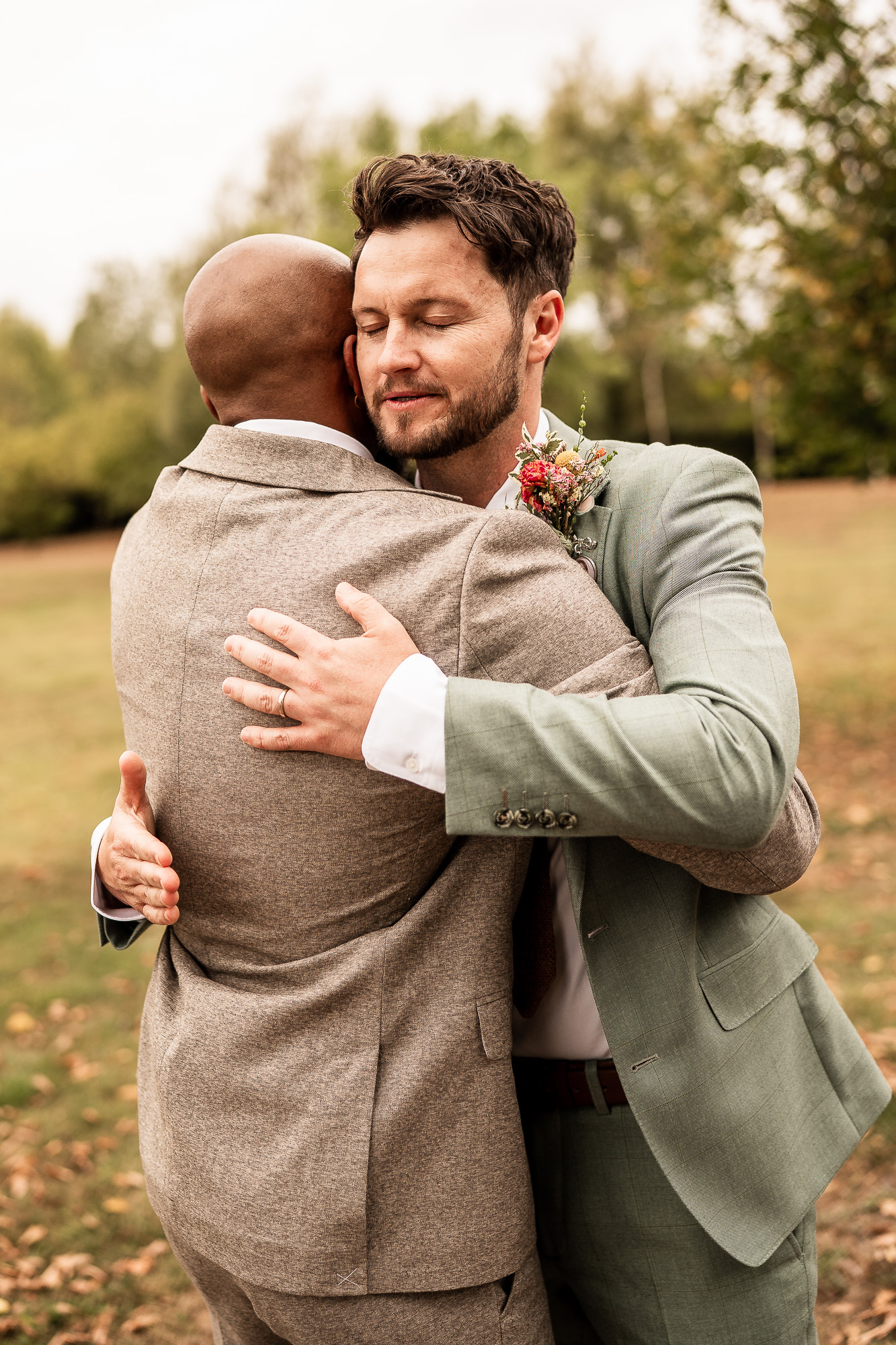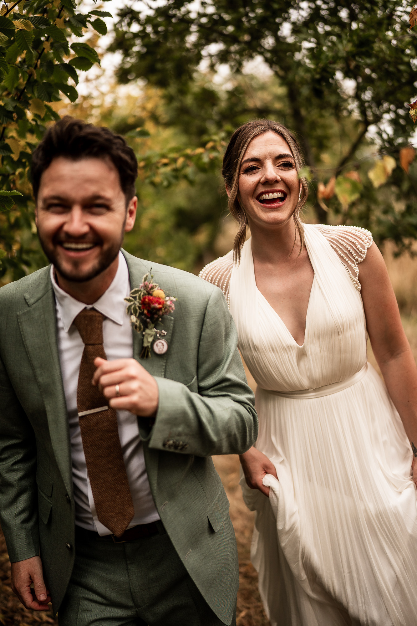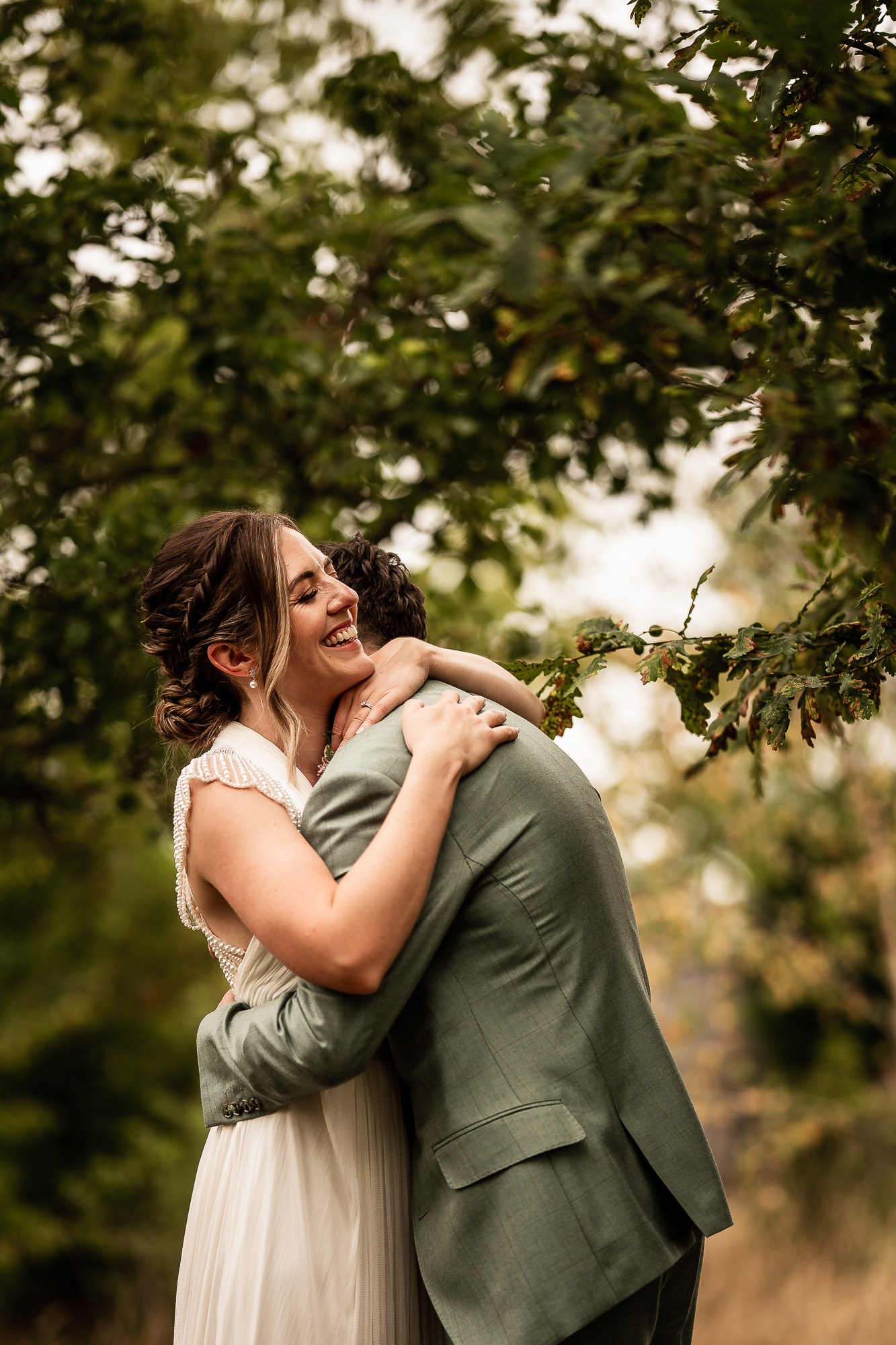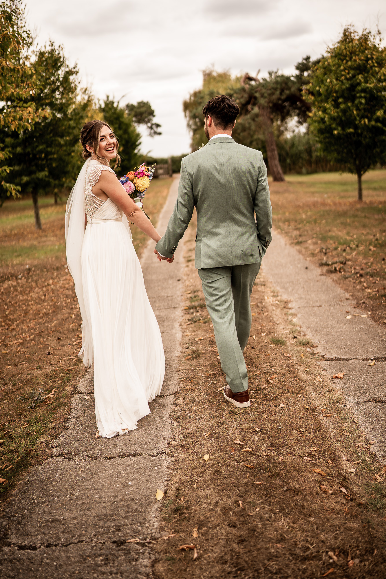 This is my favourite kind of couple portrait session. Unhurried, natural and led by how the couple are feeling. No rigid posing, just gentle direction and space to move and laugh. As we wandered past the orchard and across the five-acre lawn, we found some beautiful light filtering through the trees, creating a soft, cinematic glow that works perfectly for relaxed, editorial-style wedding portraits.