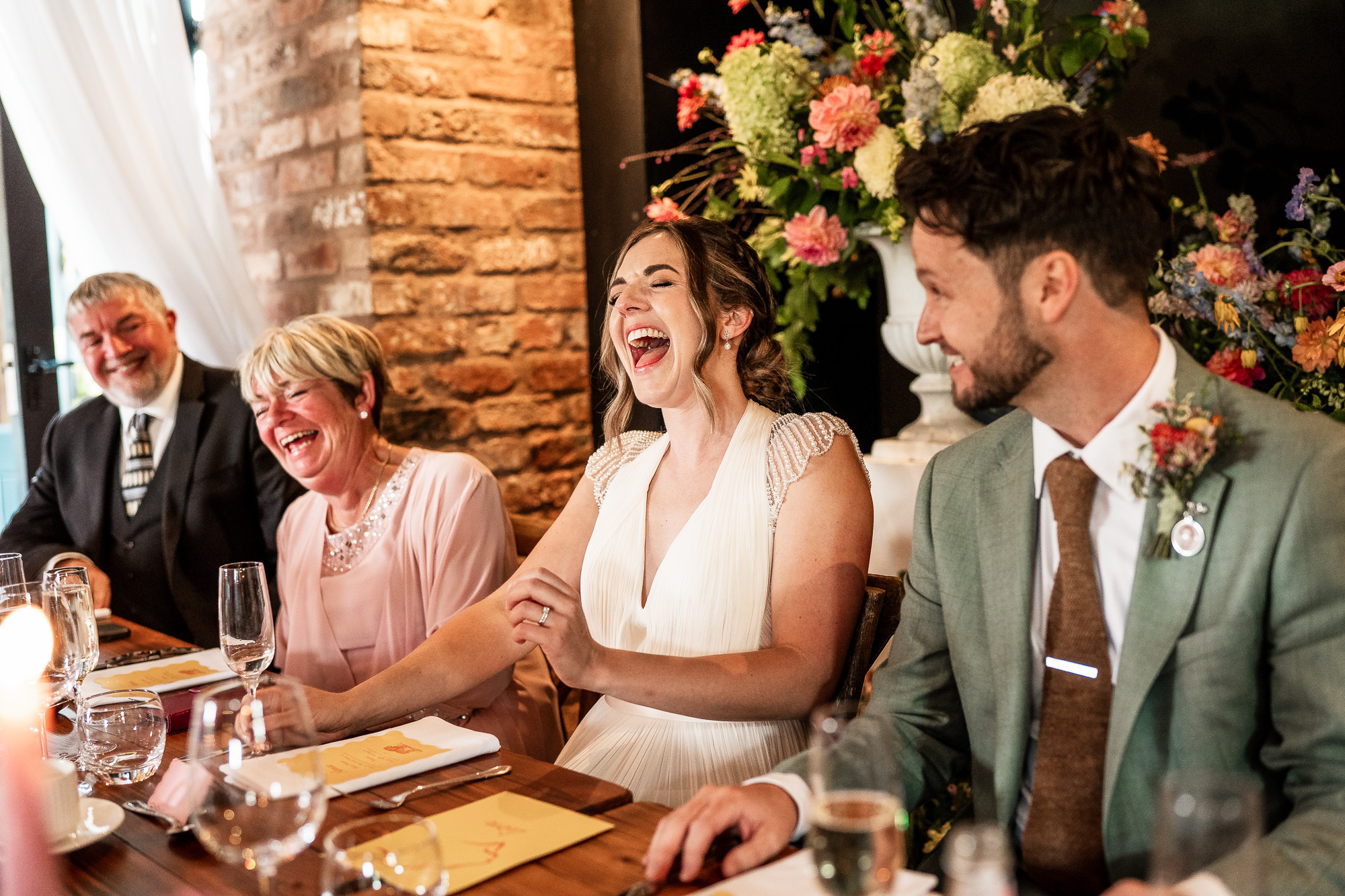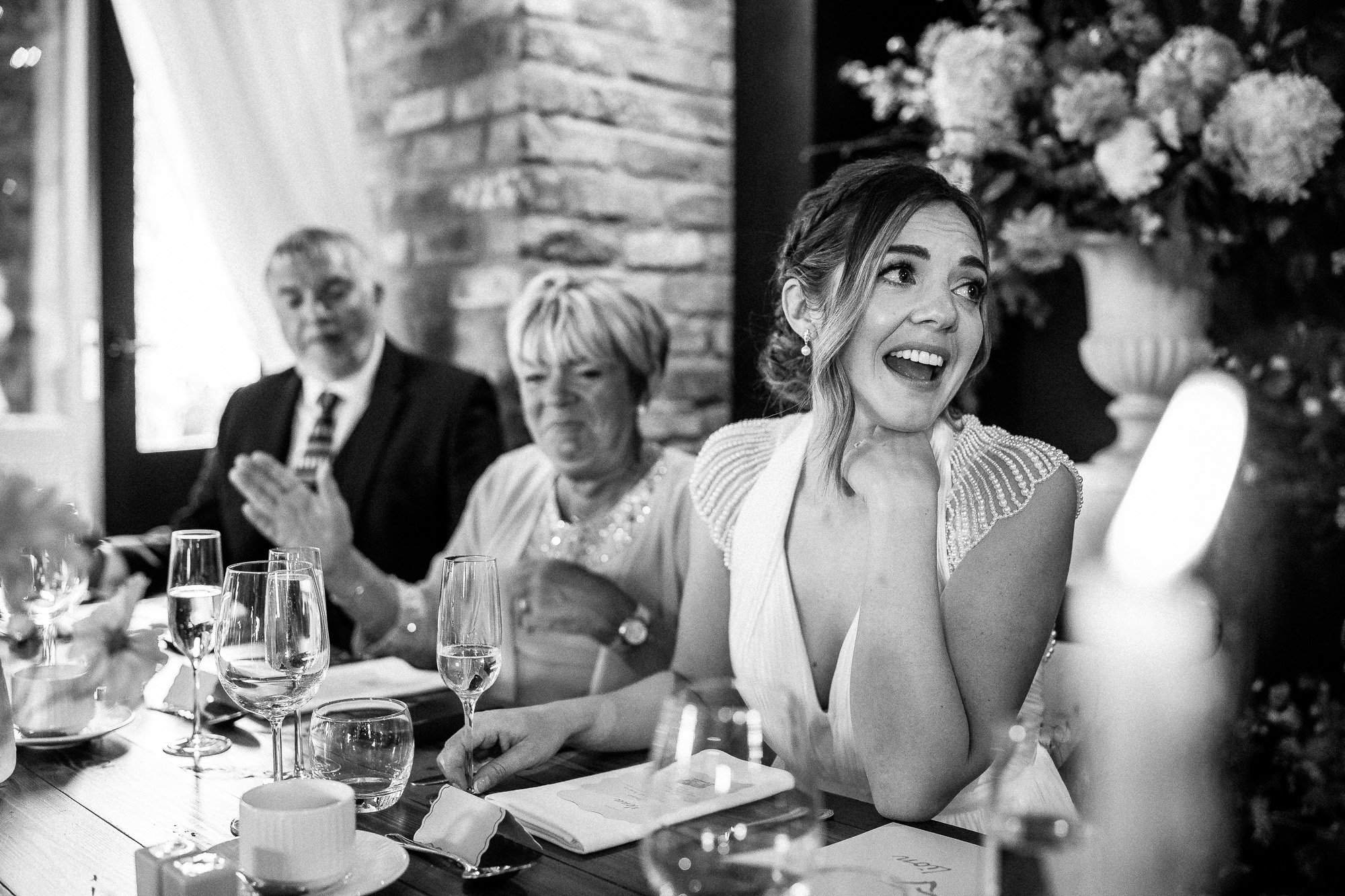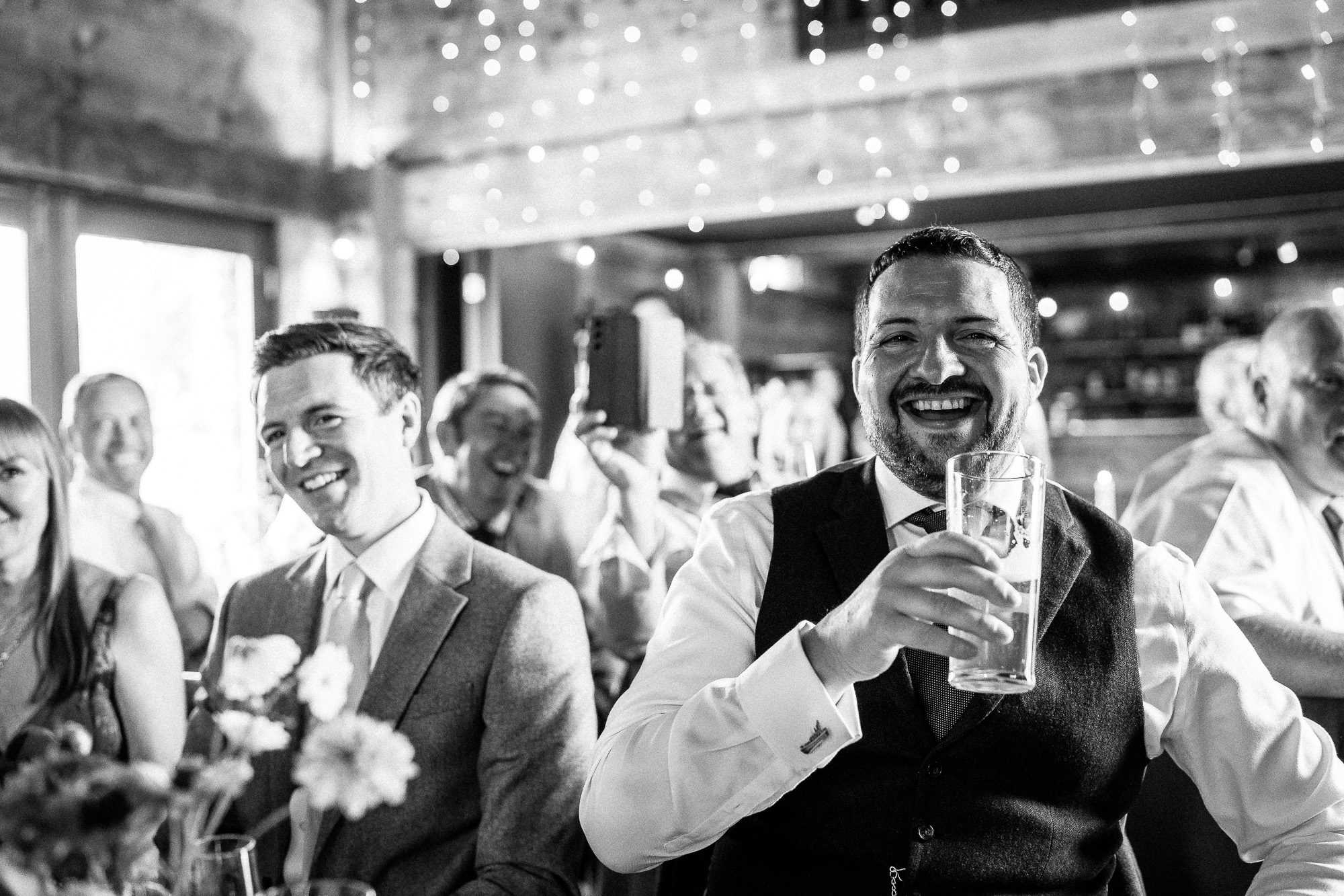 We were treated to superb speeches from the father of the bride and the best man, both striking that perfect balance between warmth and humour. There were laugh-out-loud stories, proud reflections, and a few beautifully delivered lines that brought a quiet tear to more than one eye. From a documentary wedding photography perspective, speeches are always rich with genuine reactions, guests leaning into each other, shoulders shaking with laughter, parents beaming with pride.